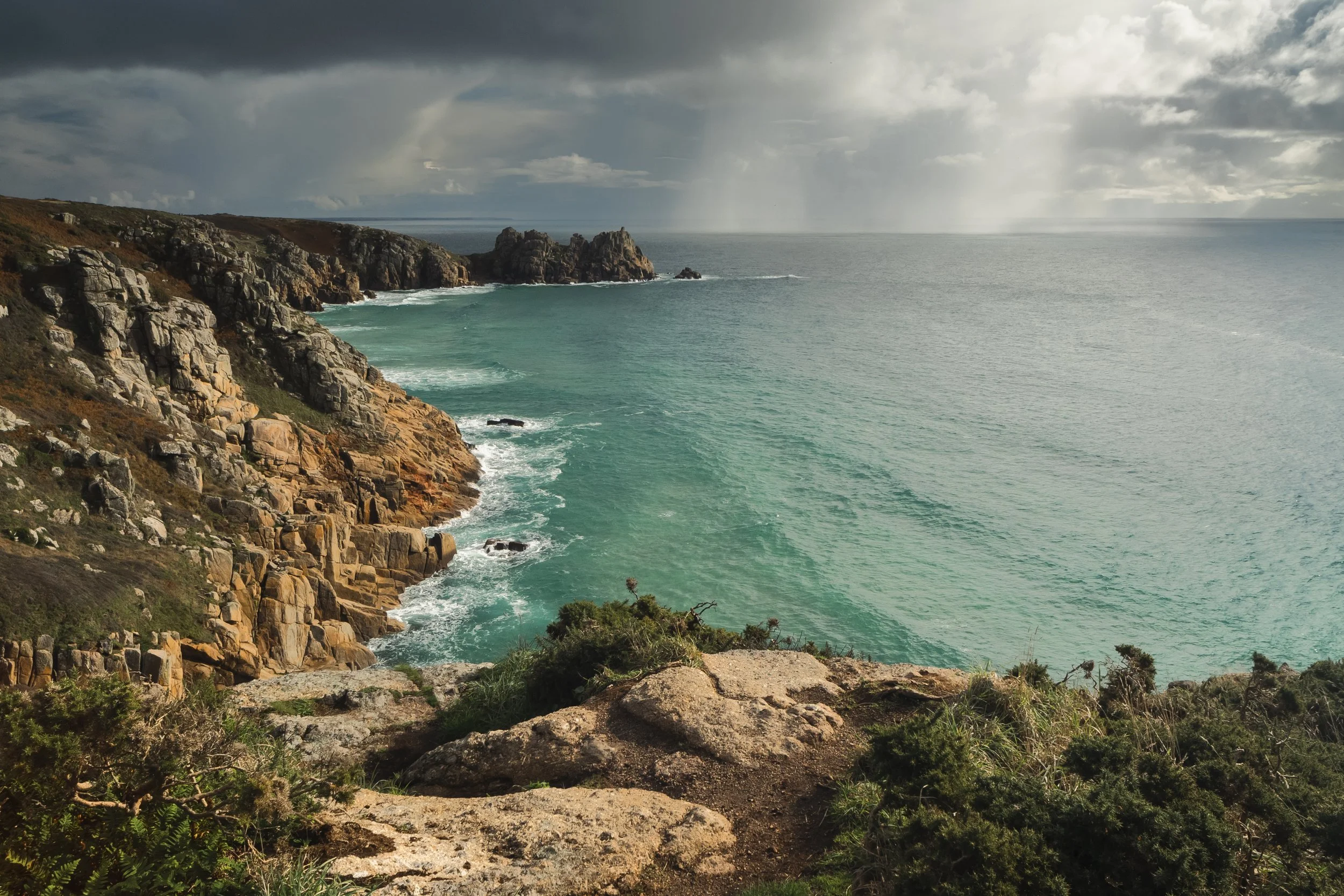 Shortly before sunset on the beach at Marazion looking out towards St Michael's Mount, the storm was brewing out in the distance in Mounts Bay.